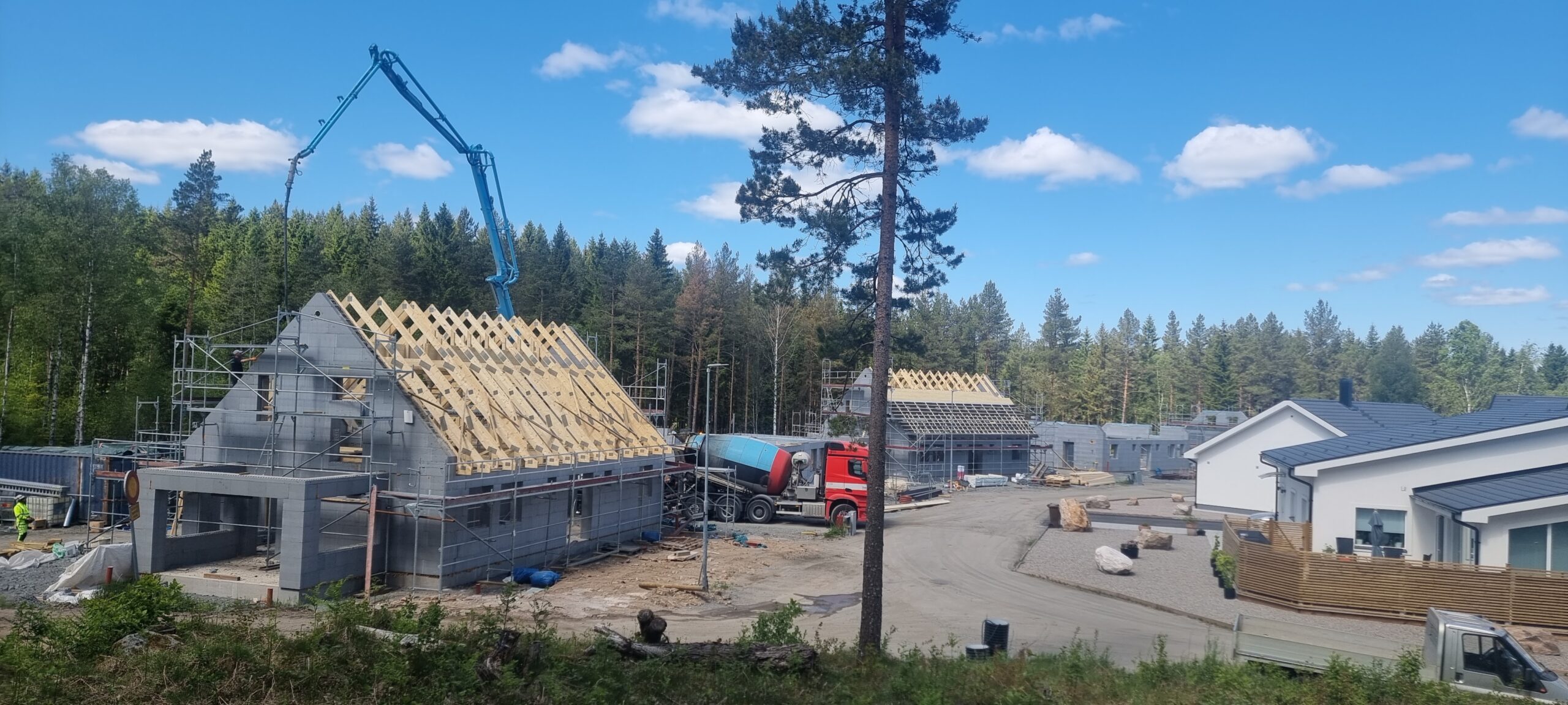 Na Švedskem je naročnik v idilično lokalno okolje postavil pet naših JUBHome hiš. Tehnično in komercialno usklajevanje se je pričelo že leta 2021, letos spomladi pa so gradbinci pričeli z delom in do poletja spravili pod streho vse hiše. Kljub temu da imajo Skandinavci močnega lokalnega proizvajalca ICF sistemov, se je investitor odločil za našo tehnologijo ne glede na visoke transportne stroške. Verjetno je pomagalo tudi, da je naših korenin saj so vile projektno poimenovane kar po našem gorskem očaku.