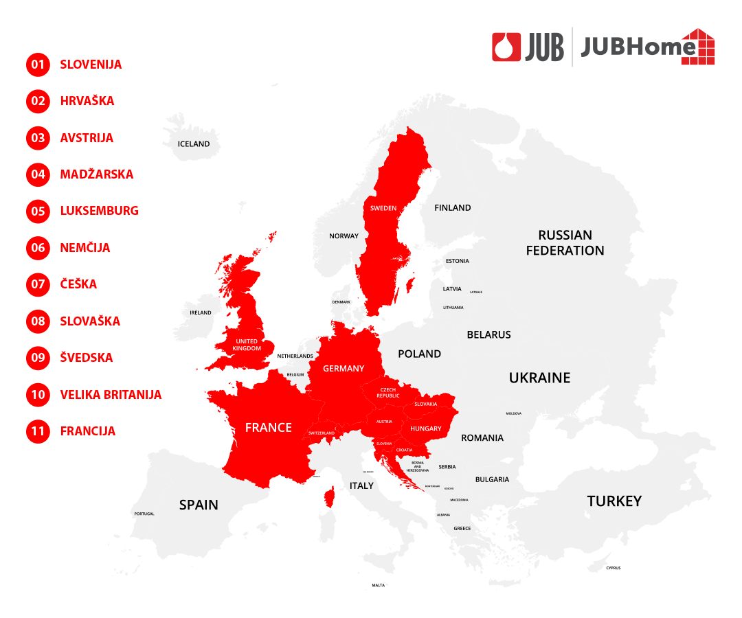 JUBHome inovativni sistemi izboljšujejo bivalno udobje in so sinonim za energetsko učinkovito in trajnostno gradnjo. JUBHome elementi za gradnjo hiš so vključno s Slovenijo uporabljeni že kar v enajstih evropskih državah: na Hrvaškem, Avstriji, Madžarskem, Luksemburgu, Nemčiji, Češkem, Slovaškem, Švedskem, Franciji in Veliki Britaniji. Ponosni smo na rast prepoznavnosti naših sistemov in da nam zaupa vse več izvajalcev po Evropi.
