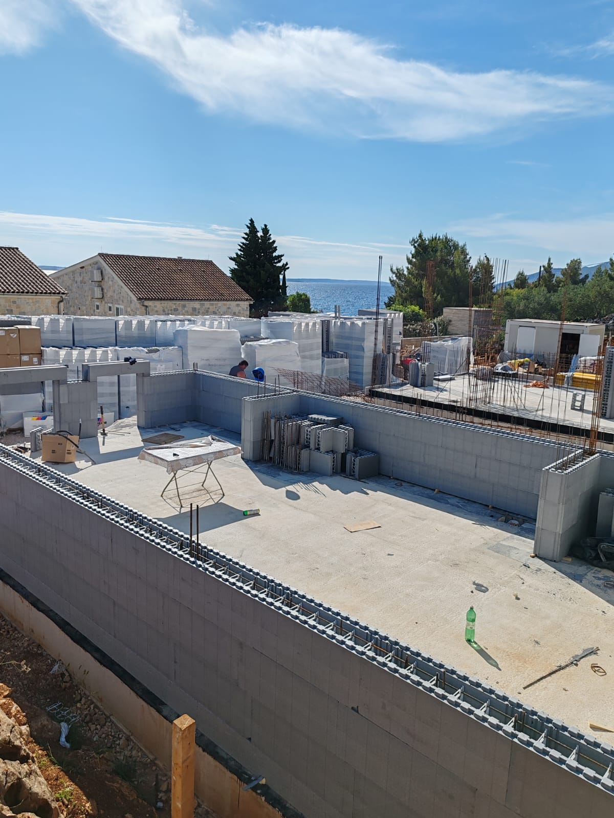 Na hrvaški obali se je začela gradnja apartmajskega dvojčka moderne zasnove. Objekt je postavljen v strmem terenu, investitor pa se je odločil za uporabo sistemov JUBHome WALL in ROOF ter tudi za tehnično asistenco tako v projektni kot izvedbeni fazi na samem gradbišču. Del fasade bo obložen z naravnim kamnom s čimer se bo objekt oblikovno navezal na starejše hiše v neposredni bližini.